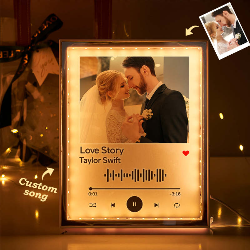 Custom Spotify Code Photo Night Light Mirror Music Wedding Gift for Her/Him