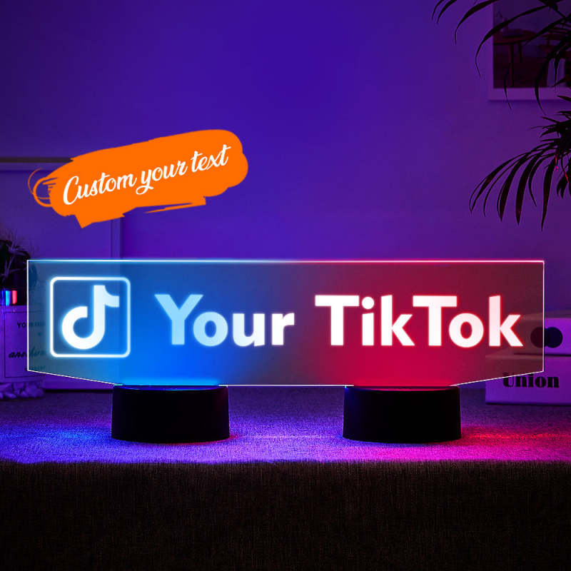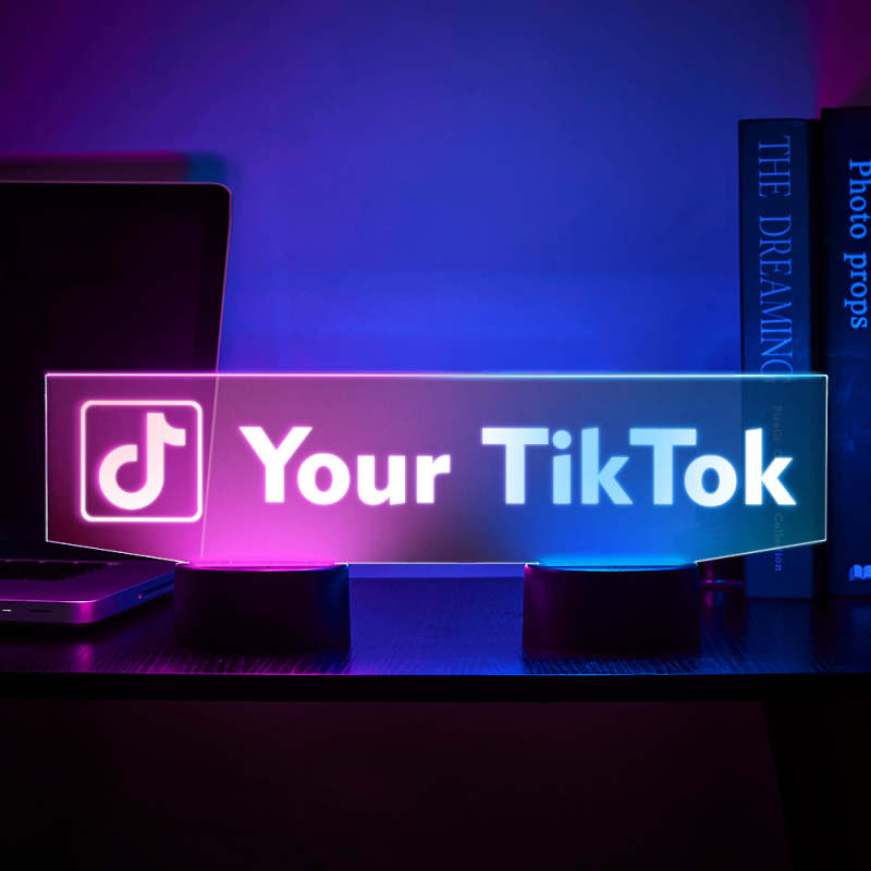 Custom TikTok Night Light Personalized Social Media Sign Dual Base Backlit LED Gift for Streamers