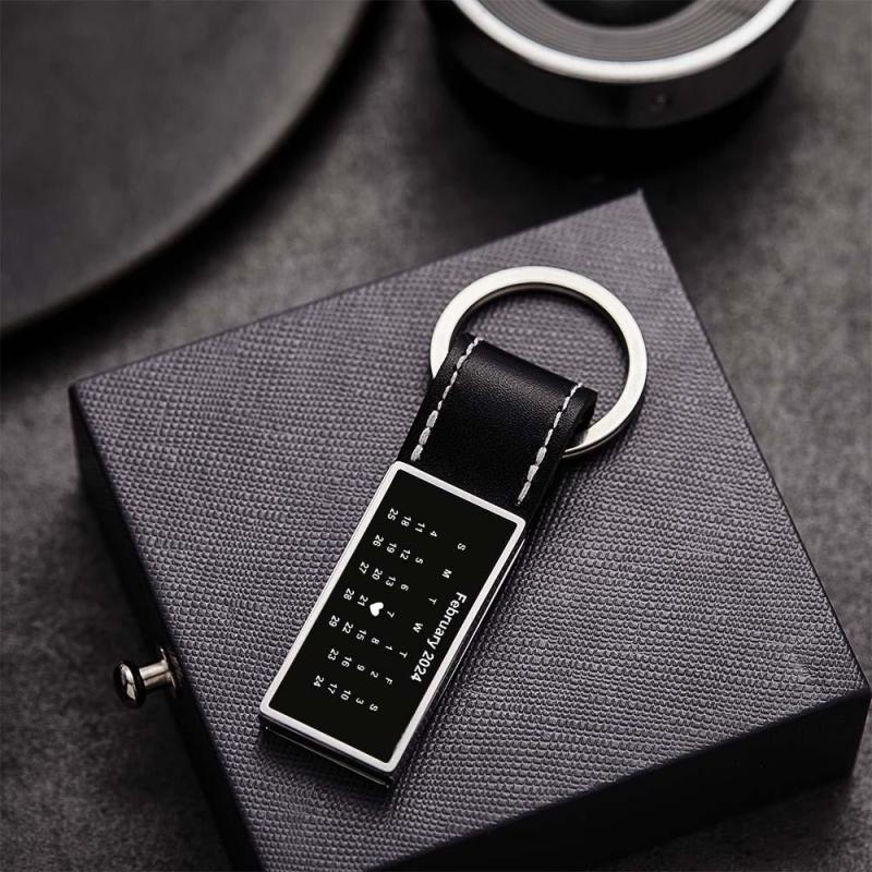 Customized Calendar Date Leather Keychain With Engraved Text Valentine Exclusive Gift For Men