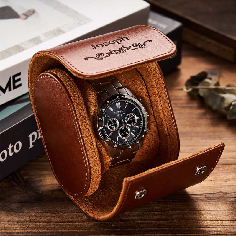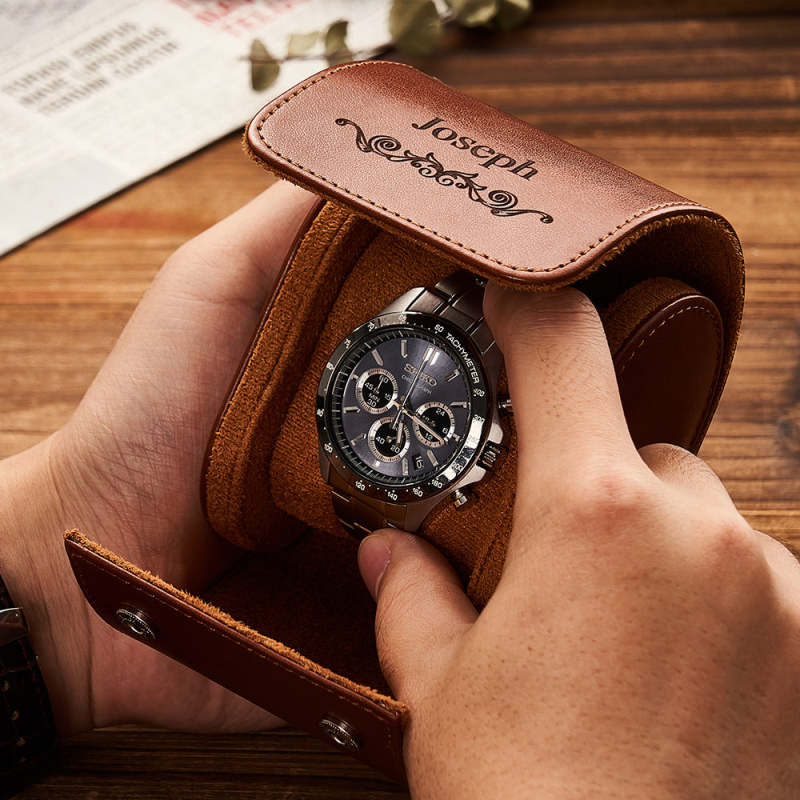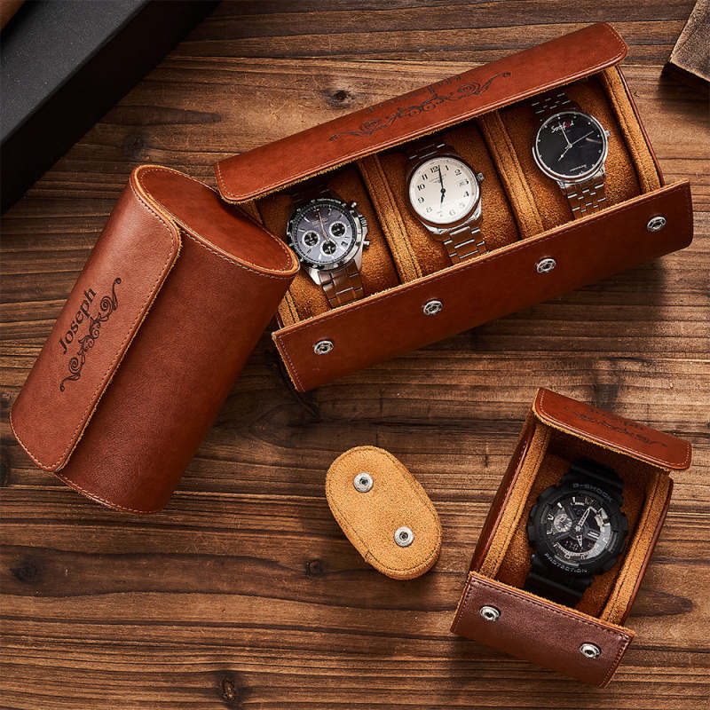 Customized Leather Watch Organizer Roll Storage Box Gift for Him