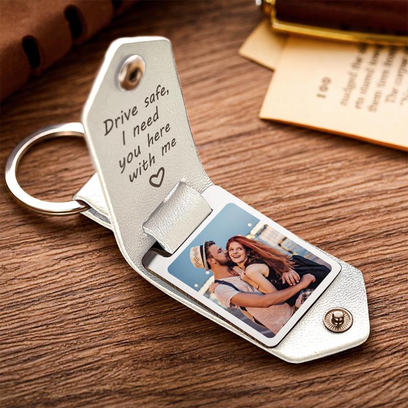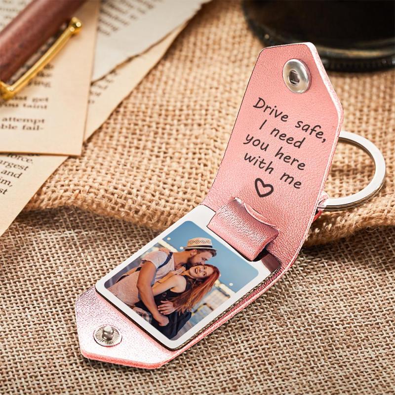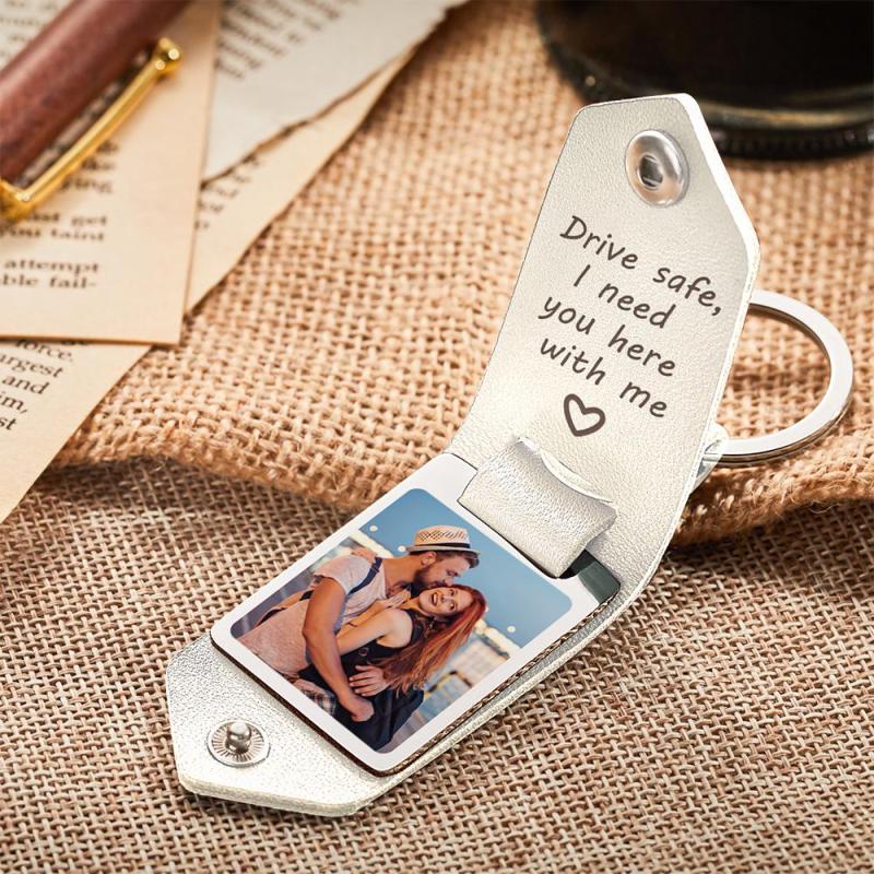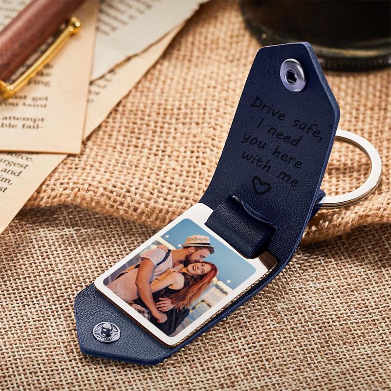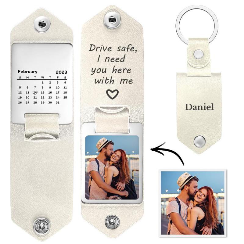 Drive Safe Leather Keychain Gifts for Lover Calendar Keychain Photo Gifts