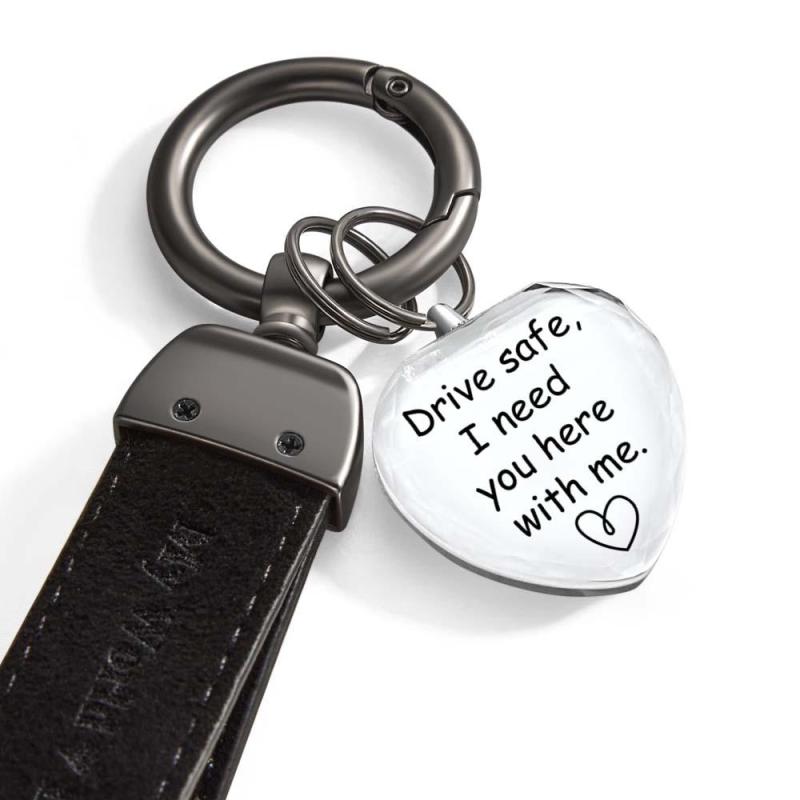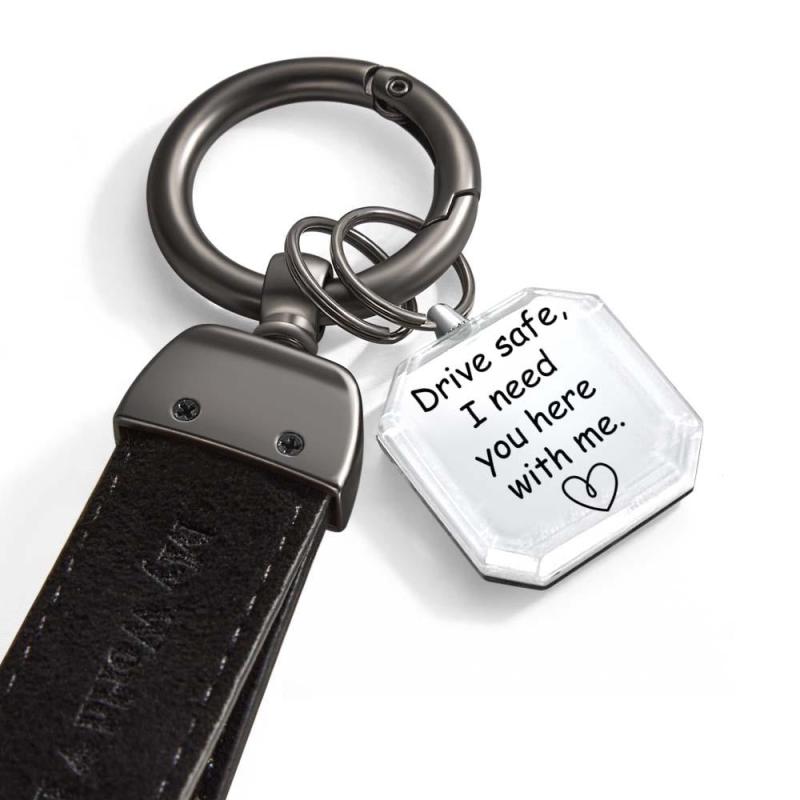Drive Safe My Love Personalized Laser Engraved Leather Crystal Photo KeyChain