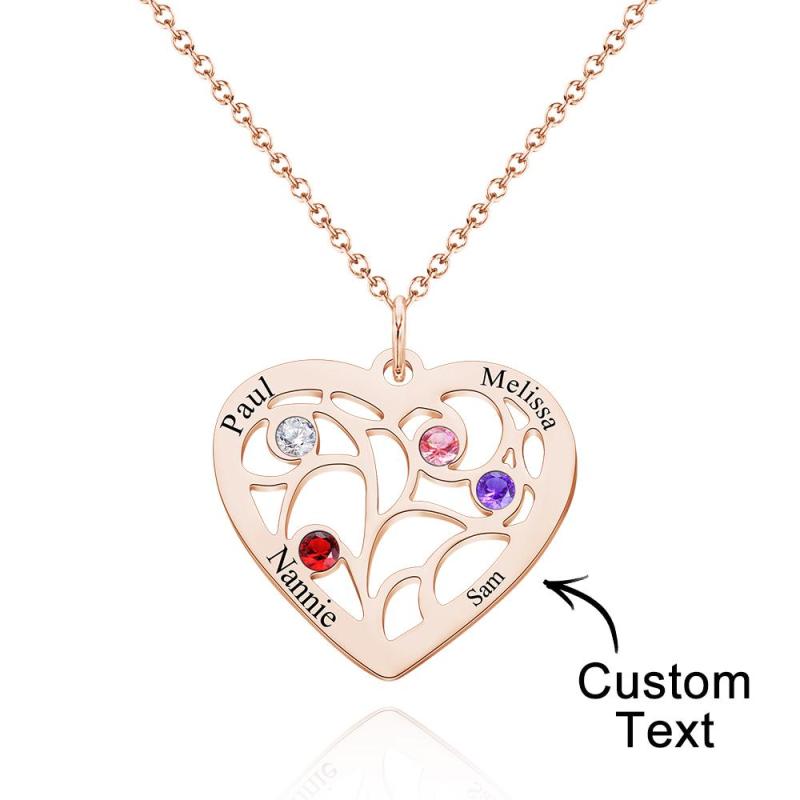 Engraved 1-5 Names Birthstone Necklace Family Tree Personalized Heart Shaped Pendant Christmas Day Gifts