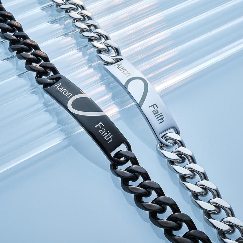 Engraved Couple Bracelet Personalized Unique Love Heart Wide Chain Bracelet Valentine's Day Gifts