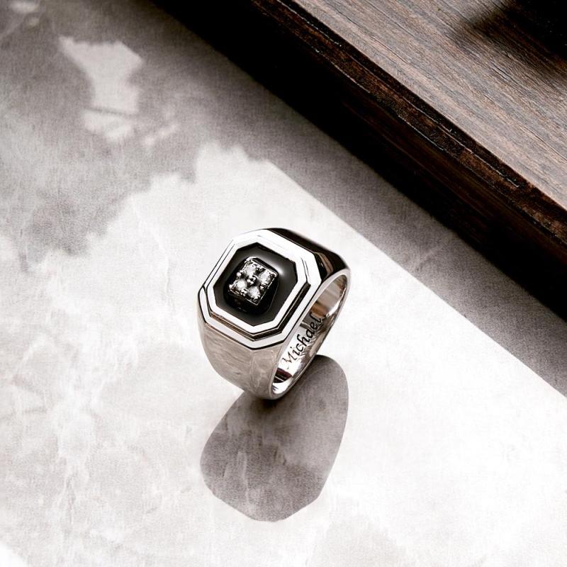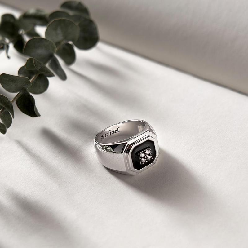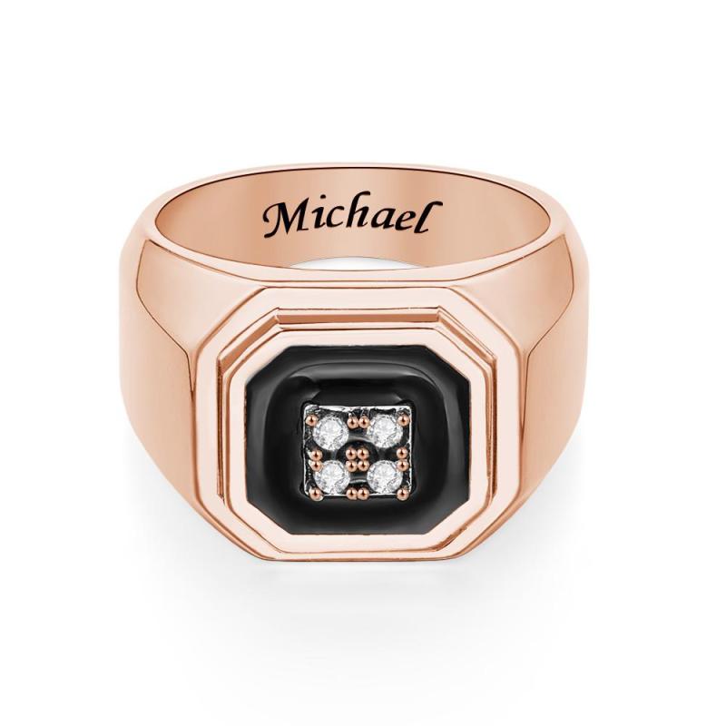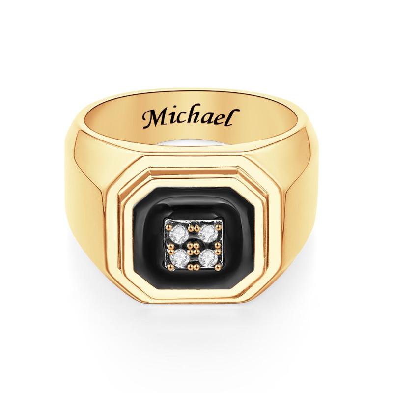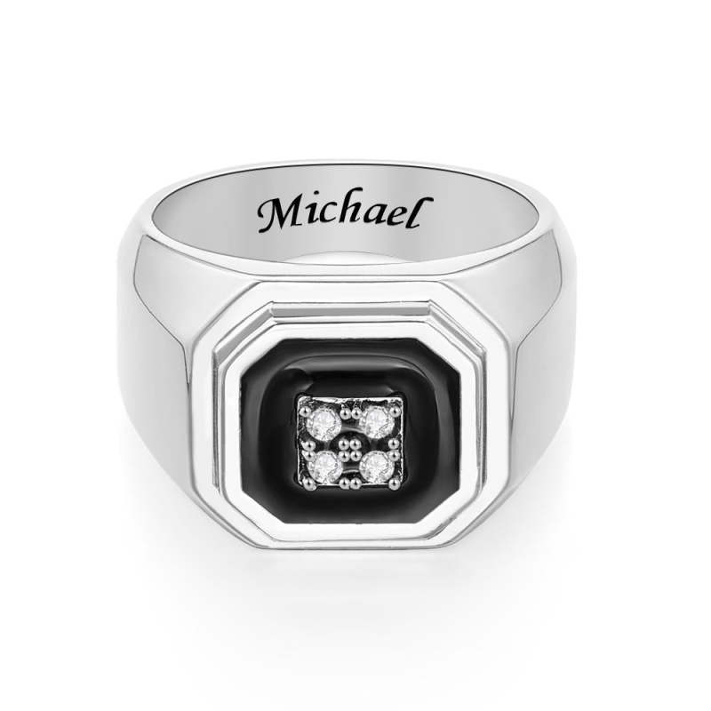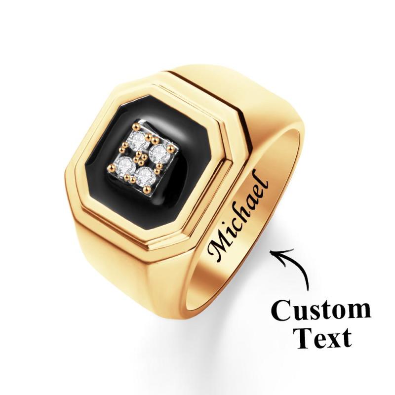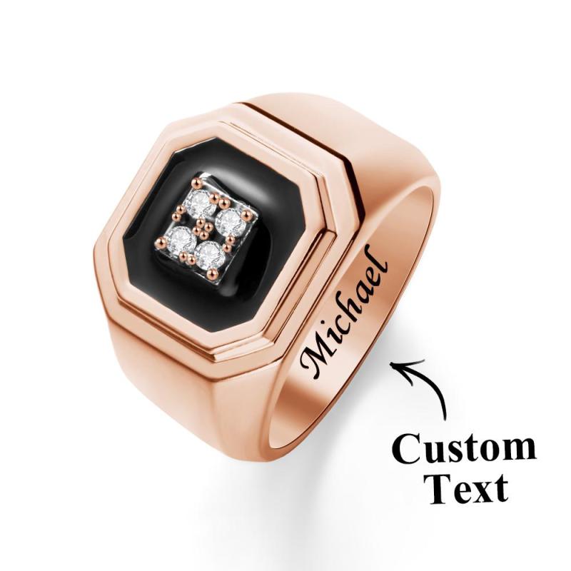 Engraved Ice Ring Black Decor Bright Stone Jeweley Ring For Men