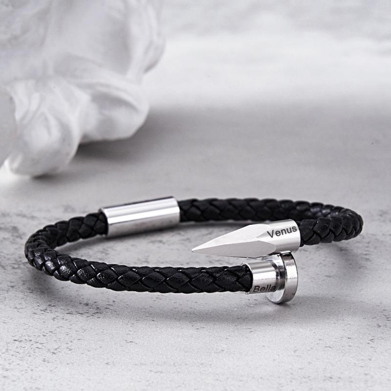 Engraved Leather Nail Bracelet Personalized Vintage Rope Bracelet Gifts For Him