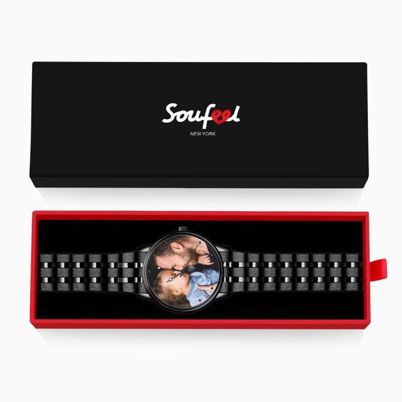 Engraved Men's Black Alloy Bracelet Photo Watch 38mm Father's Day Gifts For Dad