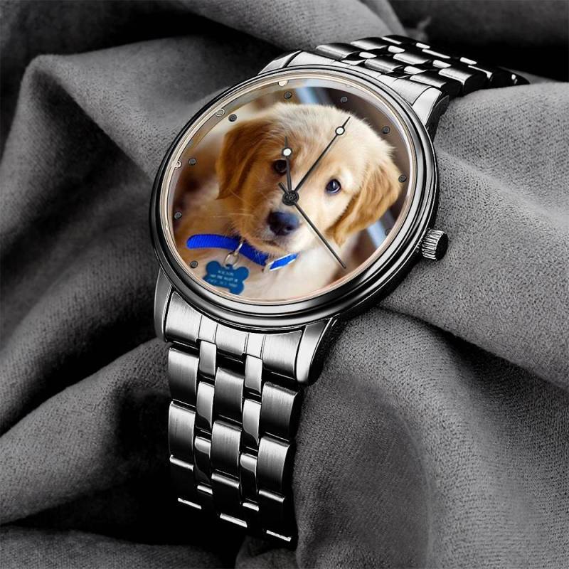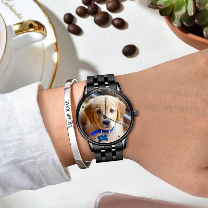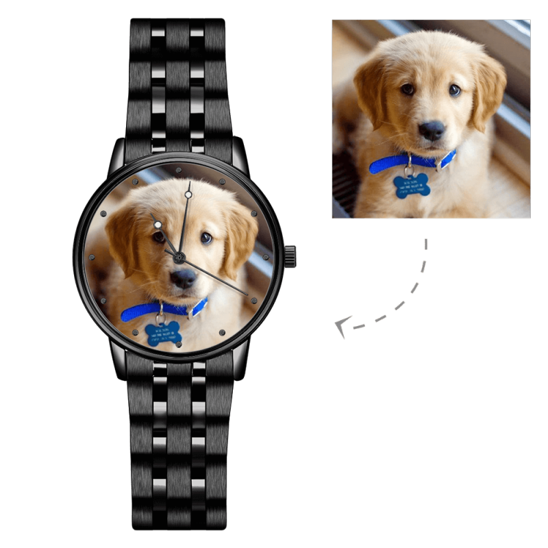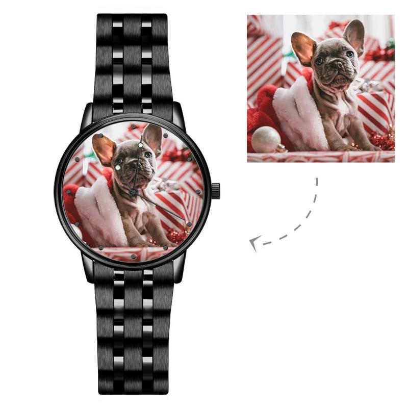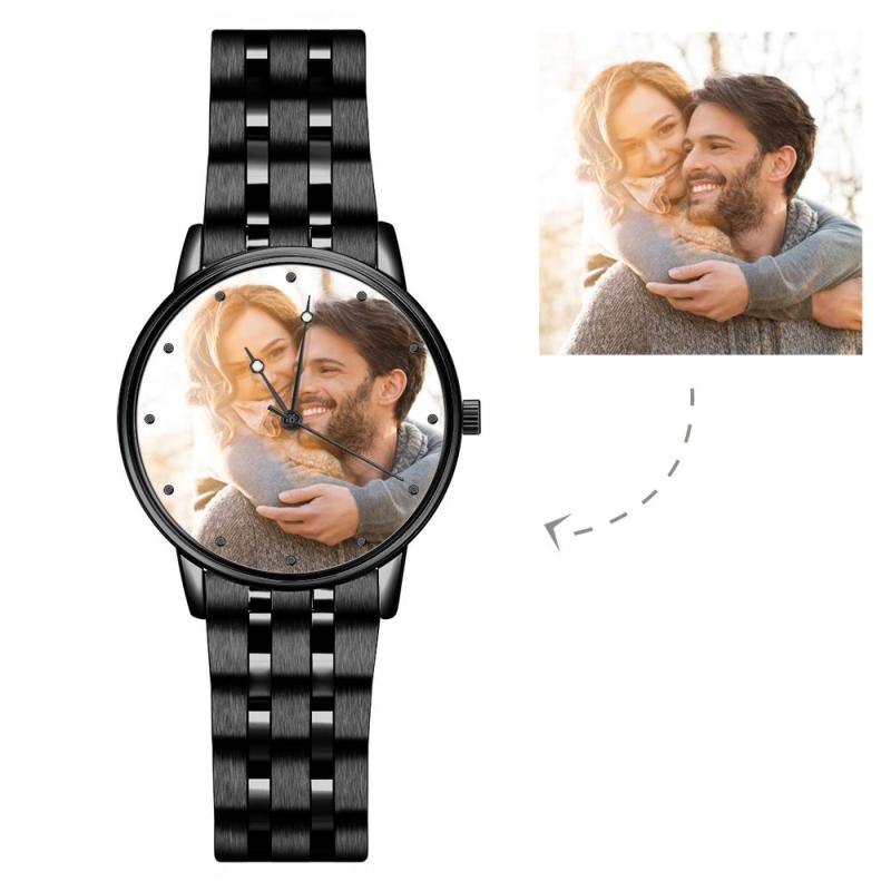 Engraved Men's Black Alloy Bracelet Photo Watch 38mm For Love