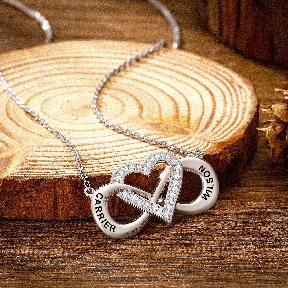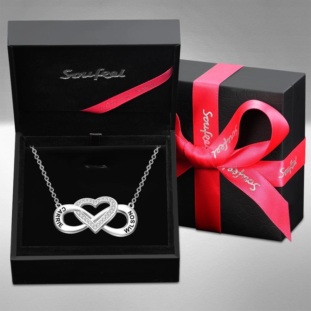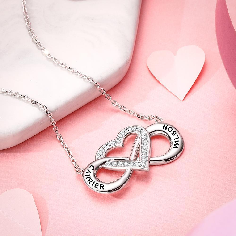 Engraved Necklace Infinity Necklace with Heart Name Necklace Couple's Gifts Plated Platinum
