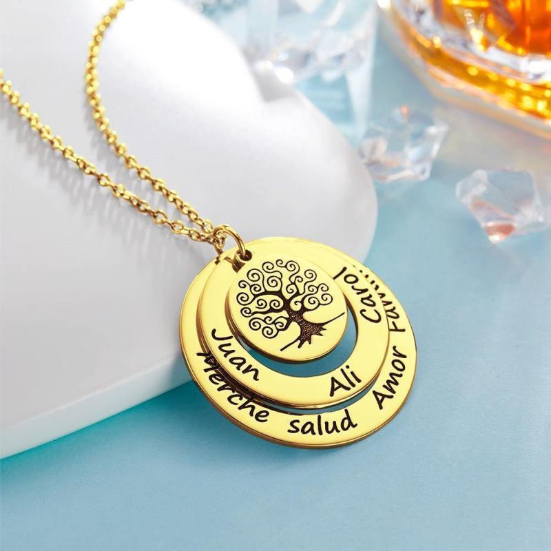 Engraved Necklace Name Necklace Family Necklace Family Tree Necklace 14k Gold Plated Silver