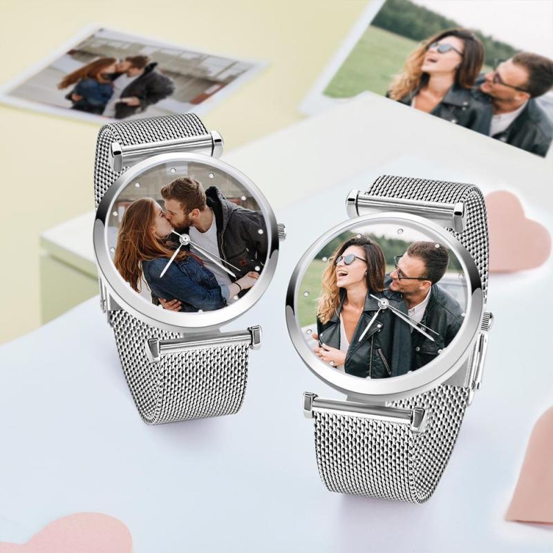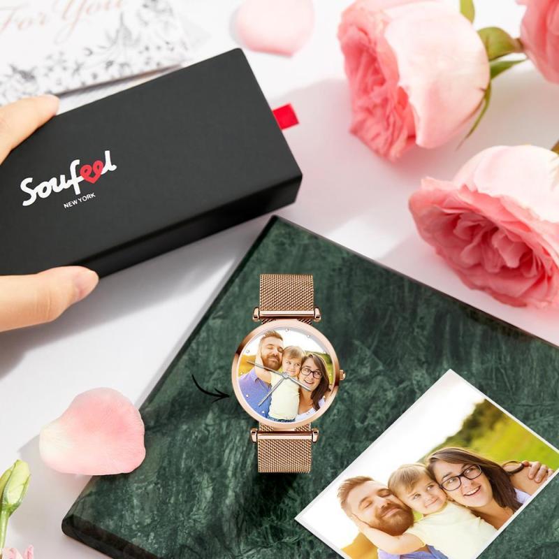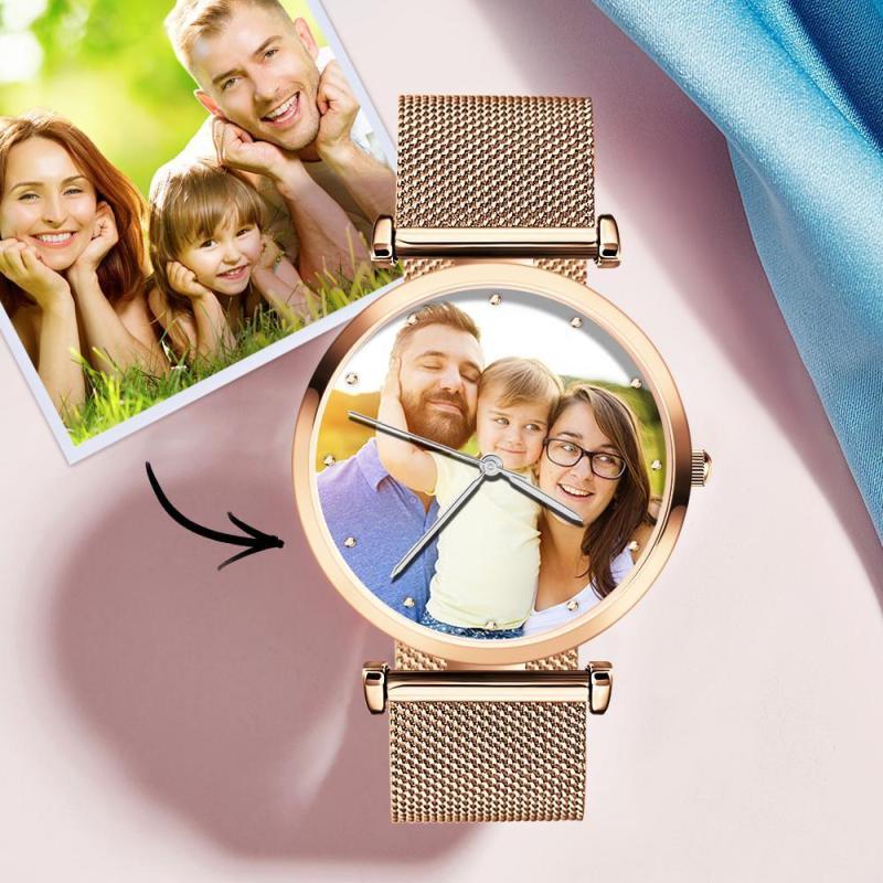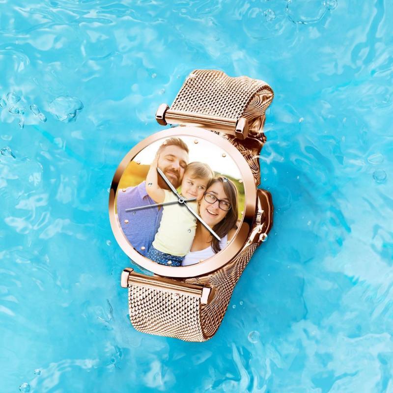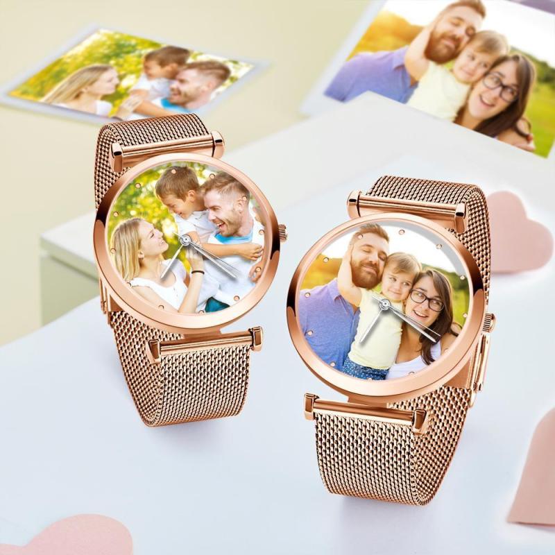 Engraved Photo Watch Alloy Bracelet Strap Rose Gold 41mm Men's