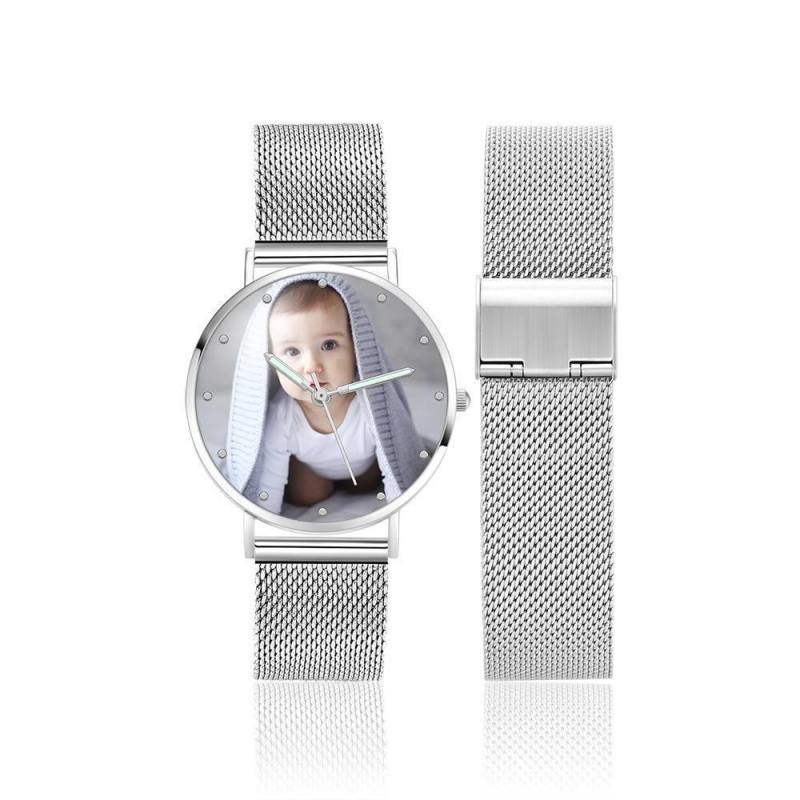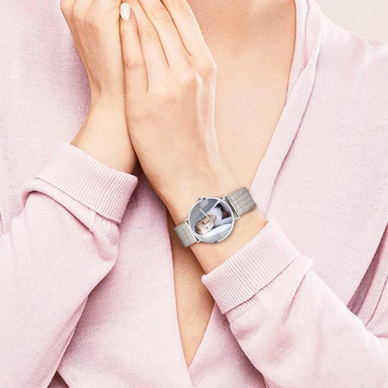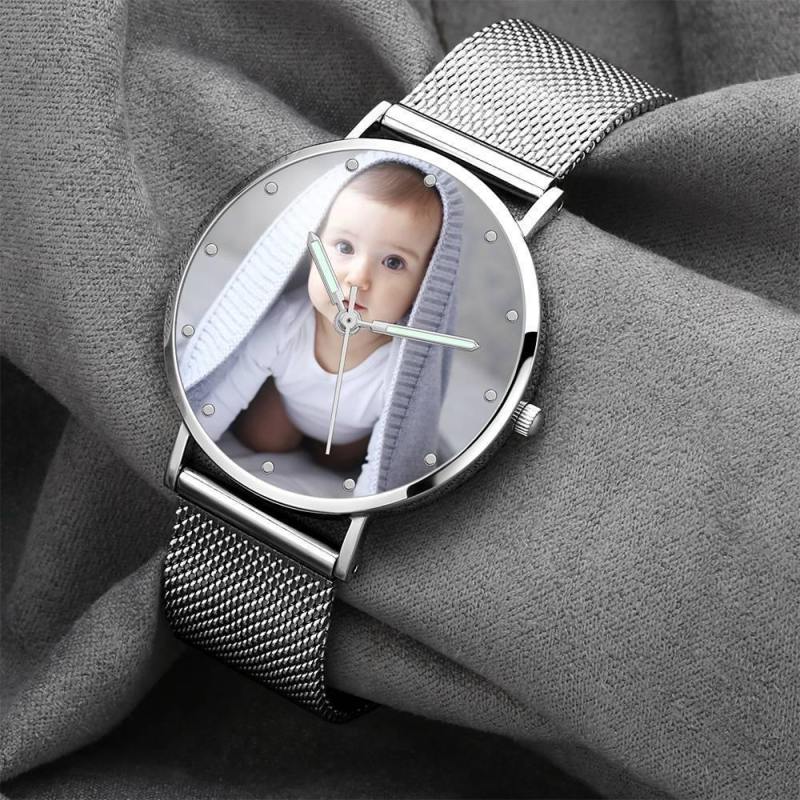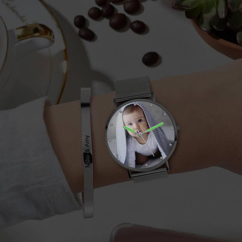 Engraved Photo Watch with Luminous Pointer Alloy Bracelet Photo Watch 36mm - Women's