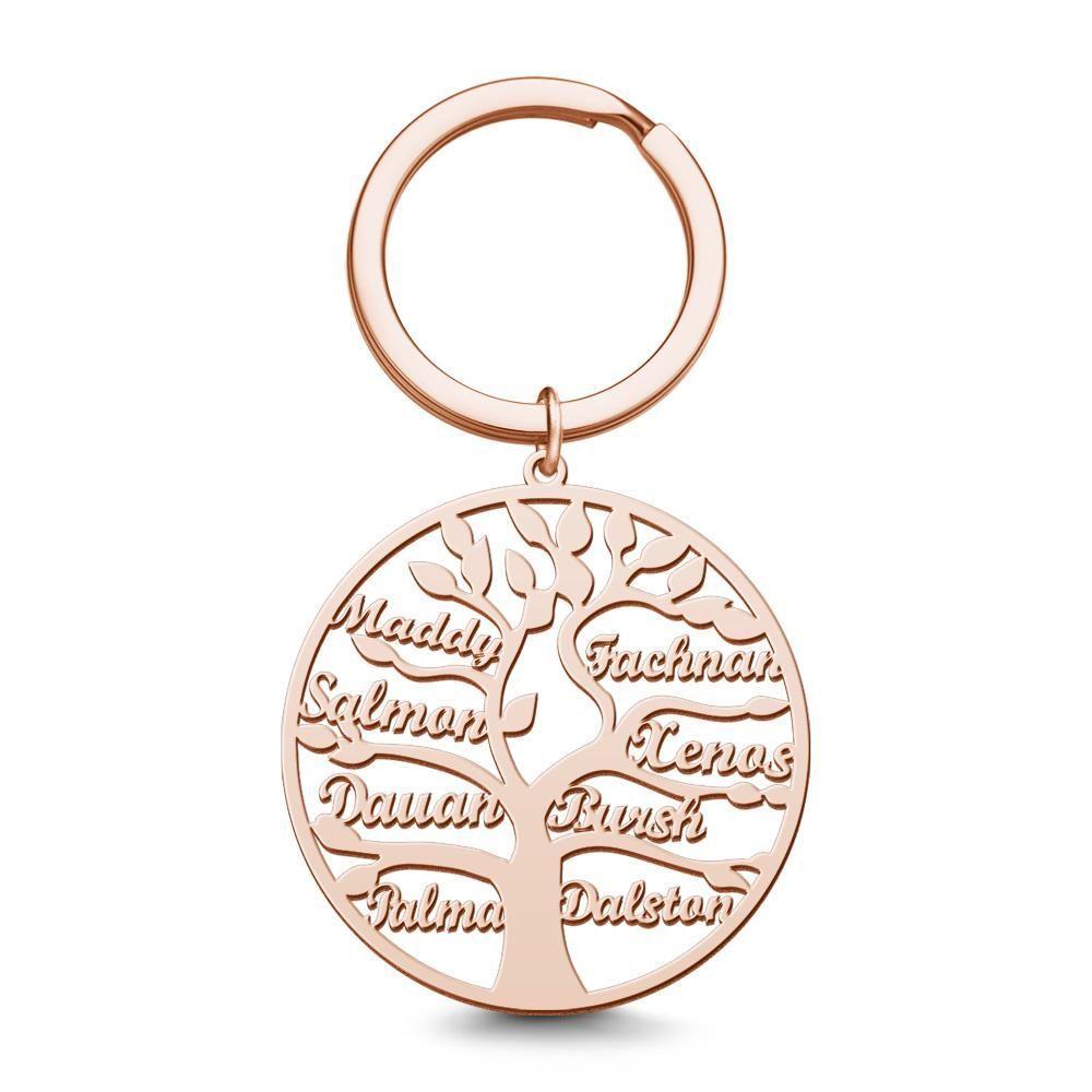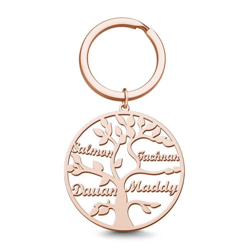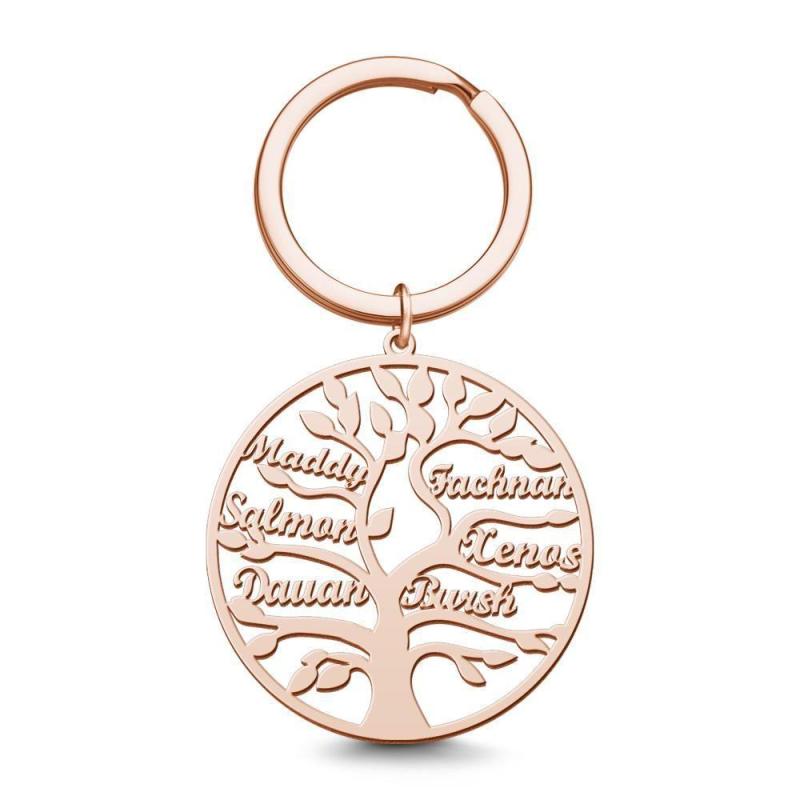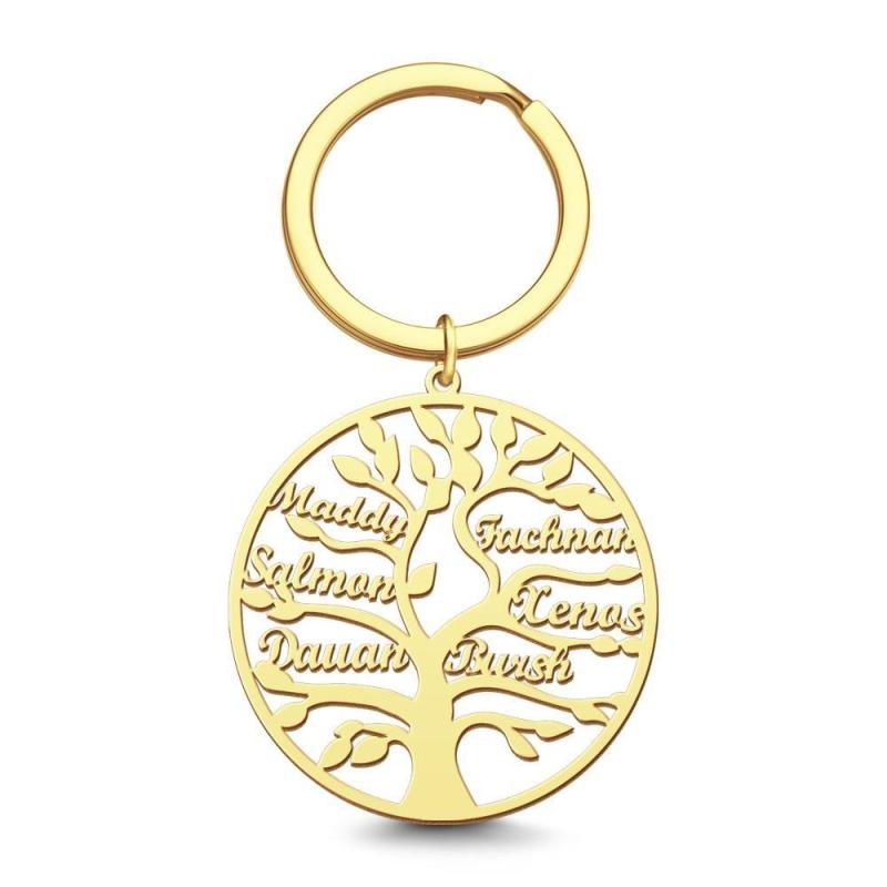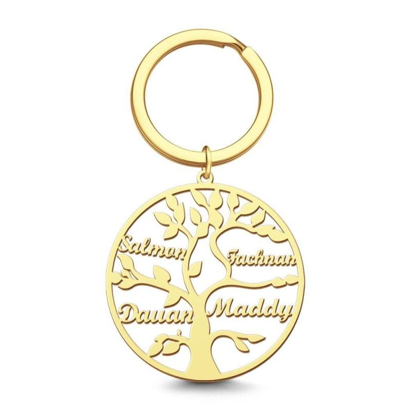 Family Tree of Life Keychain Name Gift for Family Names 14k Gold Plated 1-9 Names