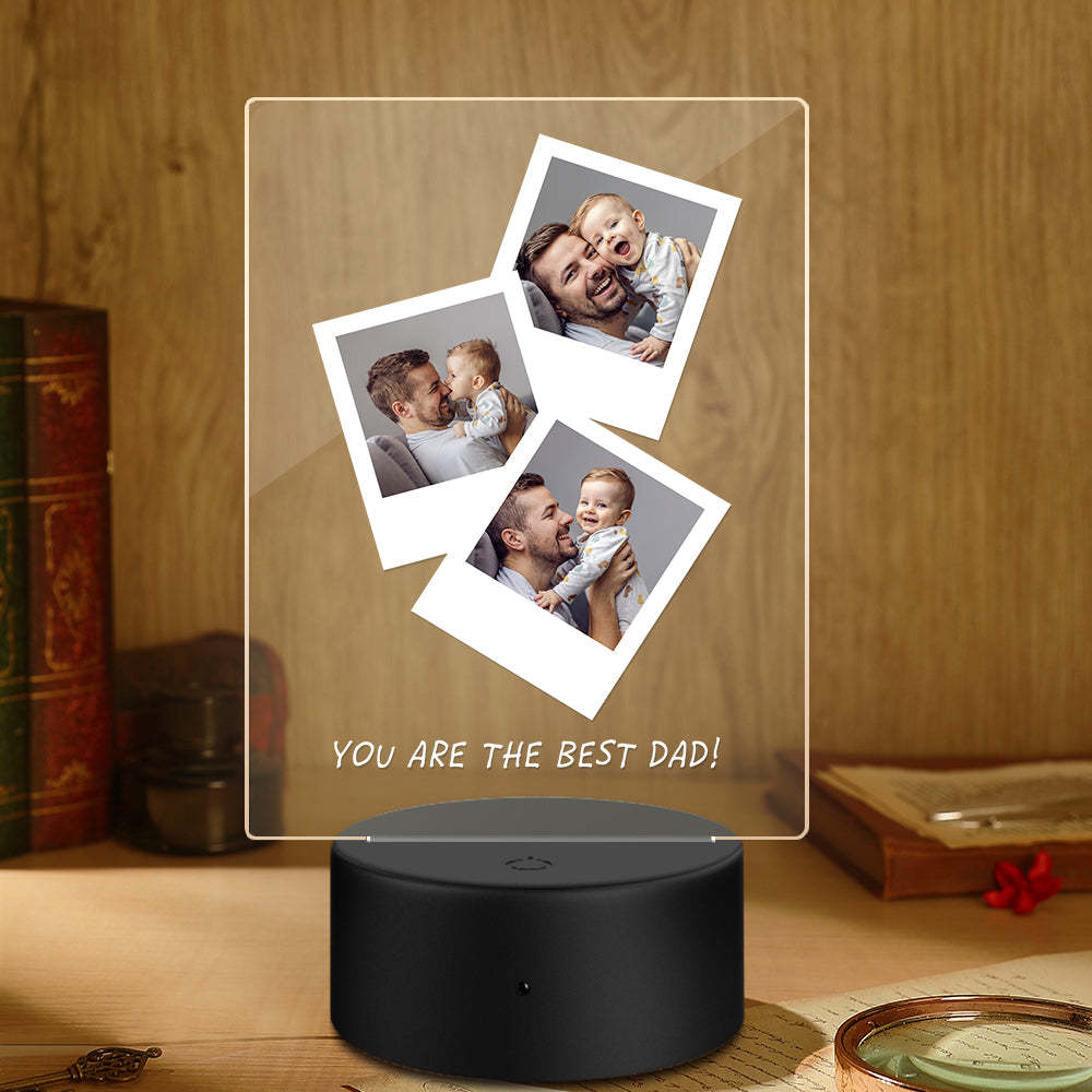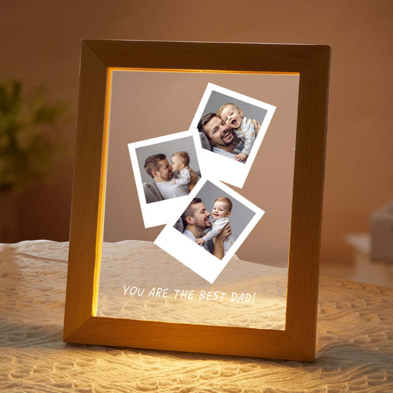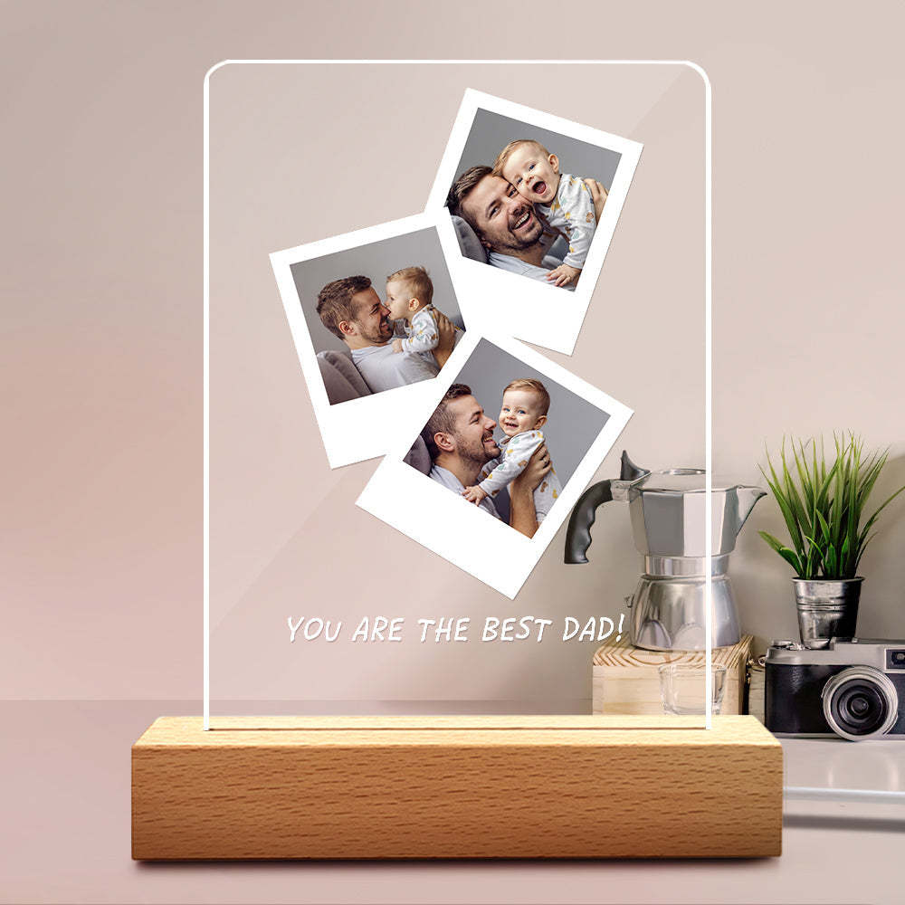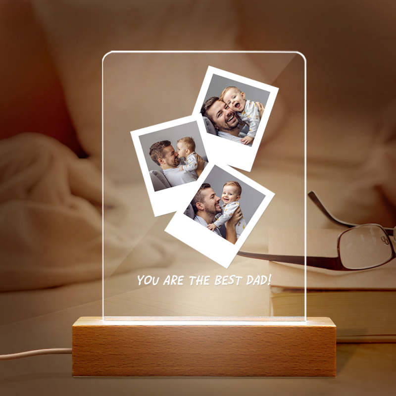 Father's Day Gift Custom Photo Wooden Base Night Light for Dad