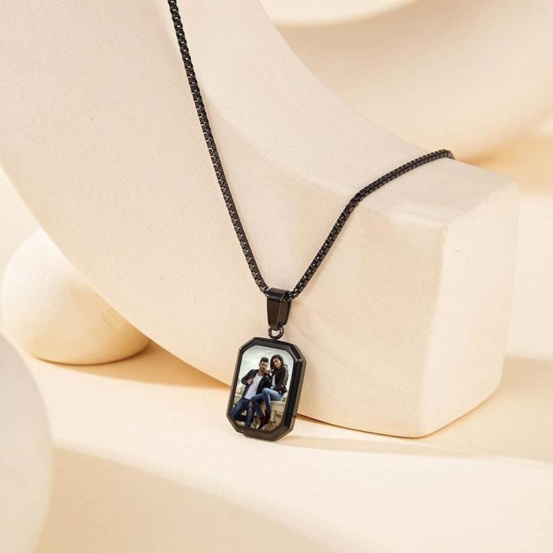 Father's Day Gifts Custom Photo Hidden Heart Magic Necklace Personalized Cold Concealed Photo Necklace Heat Reveal Picture Necklace Gifts for Him
