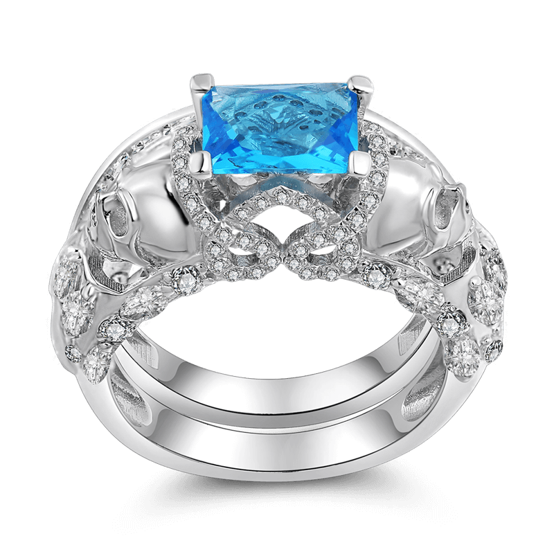 Female Heart Of Ocean Wedding Ring Set 925 Sterling Silver