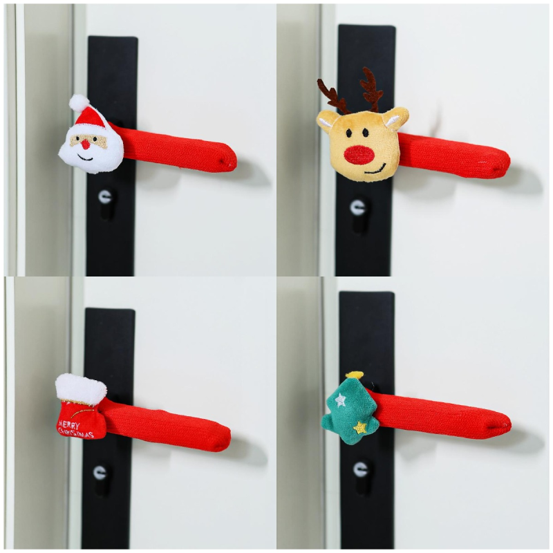 Four-piece Set Festive Christmas Door Handle Covers Decorative Knitted Handle Protectors Santa, Reindeer & Tree Decorations