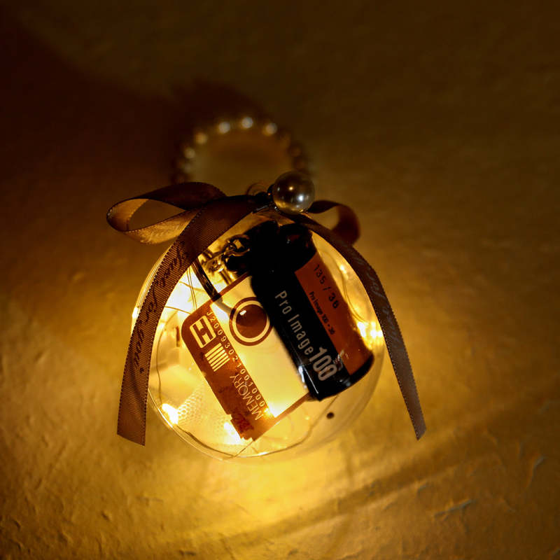 Film Roll Keychain Acrylicl Box Ball Package with LED Light - Gray