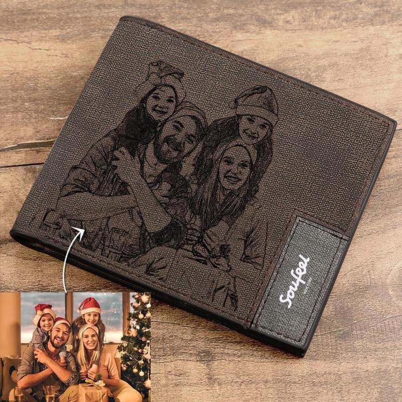 Men's Bifold Custom Inscription Photo Engraved Wallet - Coffee Leather Gift for Men