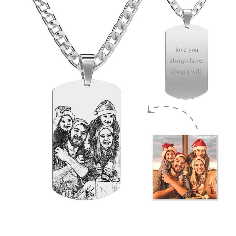 Mens Necklace Engraved Necklace Personalized Photo Necklace Photo Dog Tag