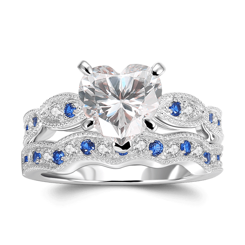 Heartbeat For You Engagement Wedding Bridal Ring Set 925 Sterling Silver