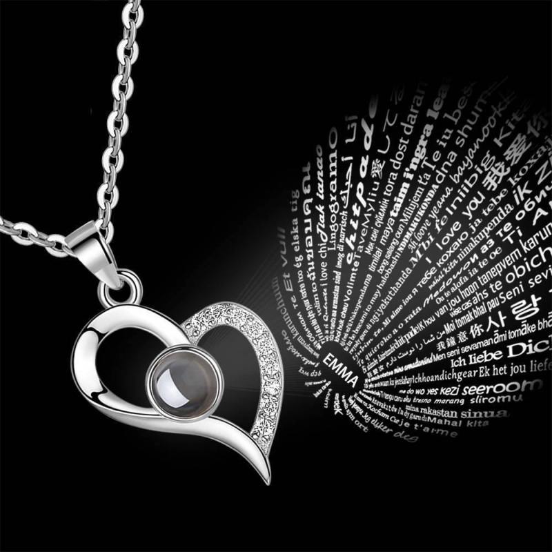 I Love You Necklace in 100 Languages Projection Engraved Necklace Love Your Heart Silver