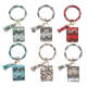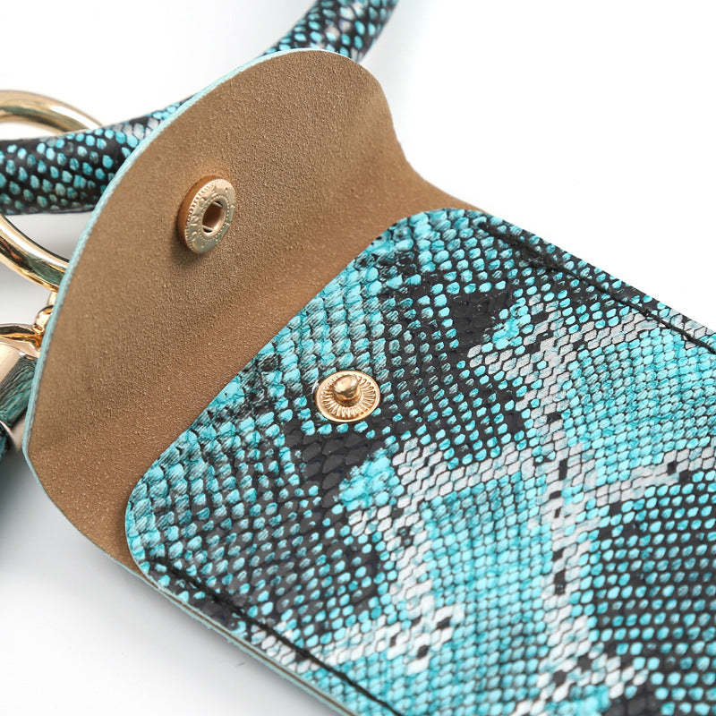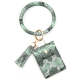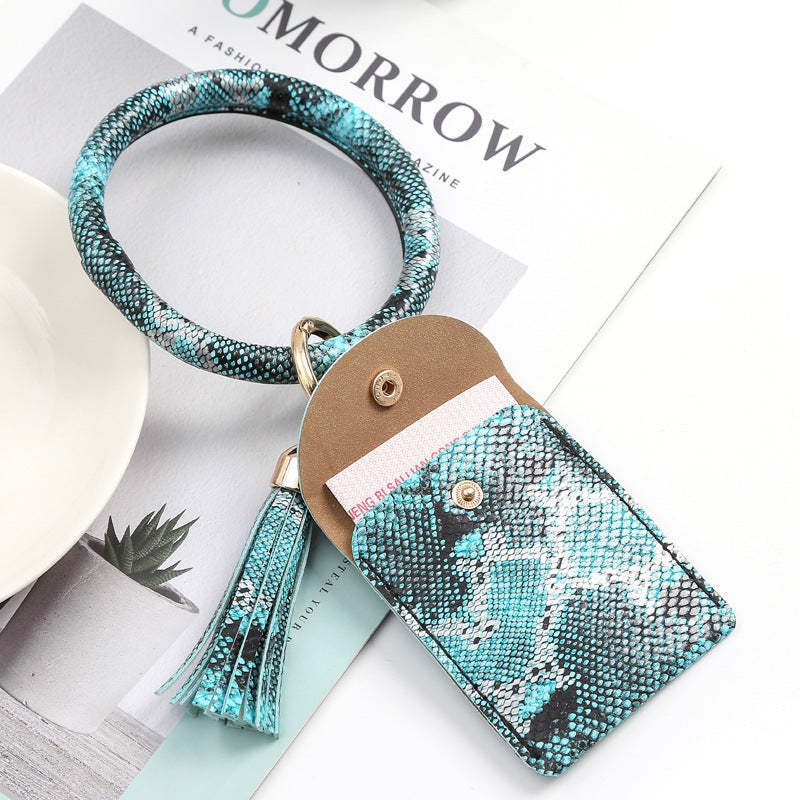 Leather Wristlet Circle Keychain Bangle Card Pocket for Women