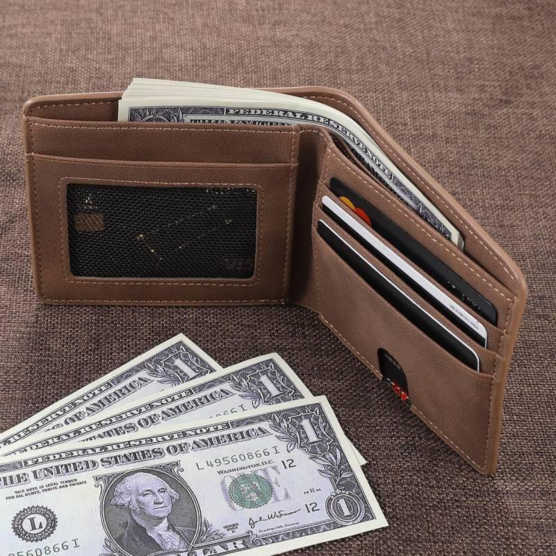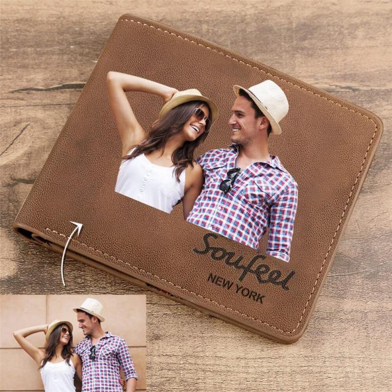 Men's Bifold Custom Inscription Photo Wallet - Brown Leather