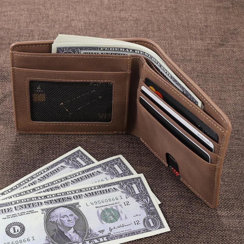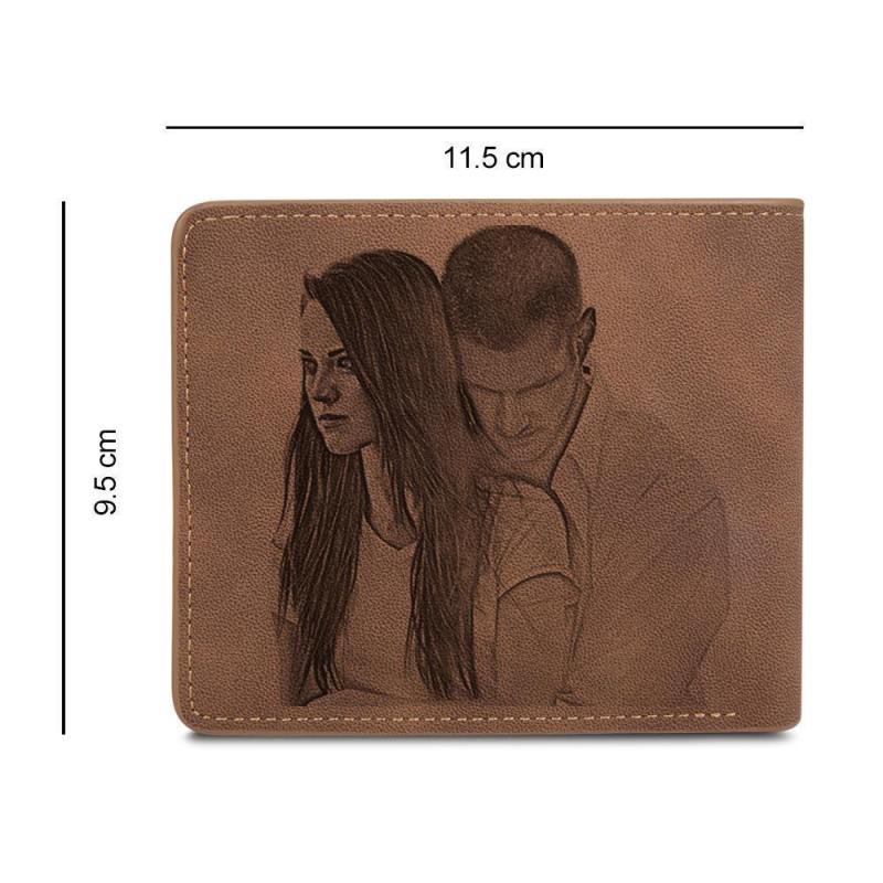 Men's Bifold Custom Inscription Photo Wallet Two Pictures - Brown Leather
