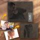 Men's Bifold Custom Inscription Photo Wallet Two Pictures - Coffee Leather