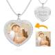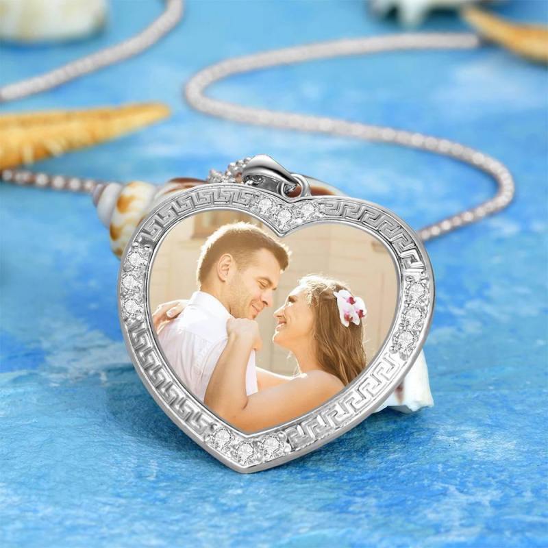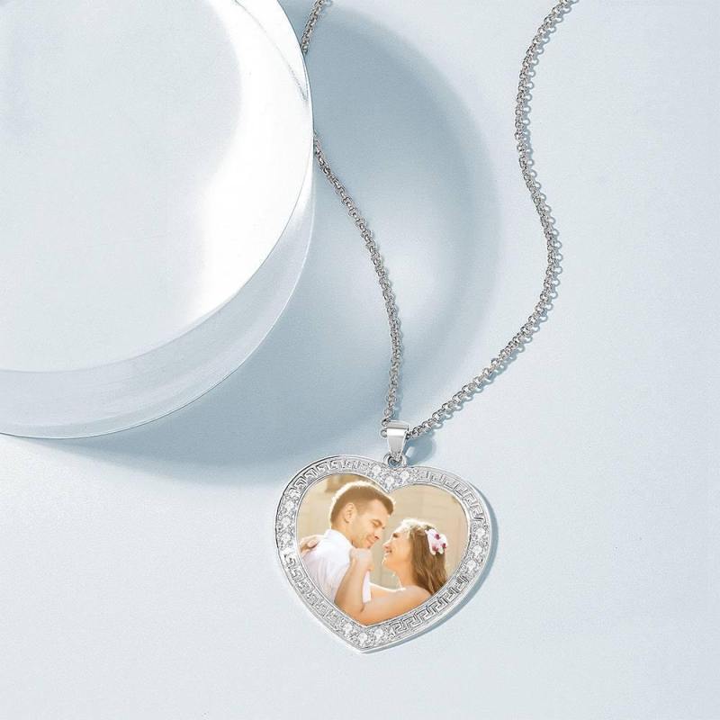 Men's Personalized Photo Engraved Necklace, Rhinestone Crystal Heart Shape Photo Necklace Platinum Plated Silver - Colorful