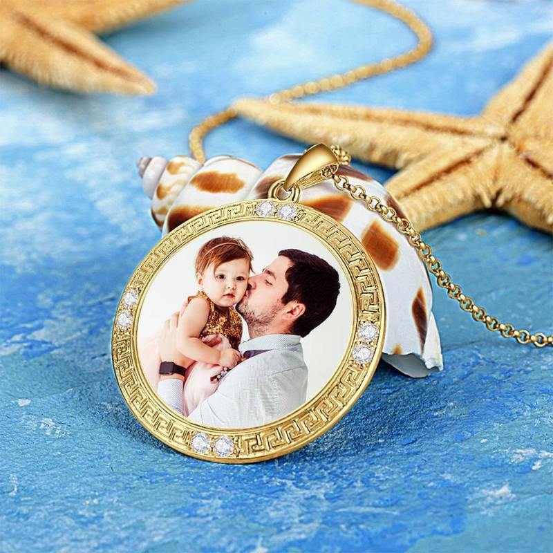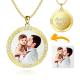 Men's Personalized Photo Engraved Necklace, Rhinestone Crystal Round Shape Photo Necklace 14 Gold Plated Golden - Colorful