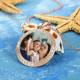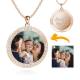 Men's Personalized Photo Engraved Necklace, Rhinestone Crystal Round Shape Photo Necklace Rose Gold Plated - Colorful
