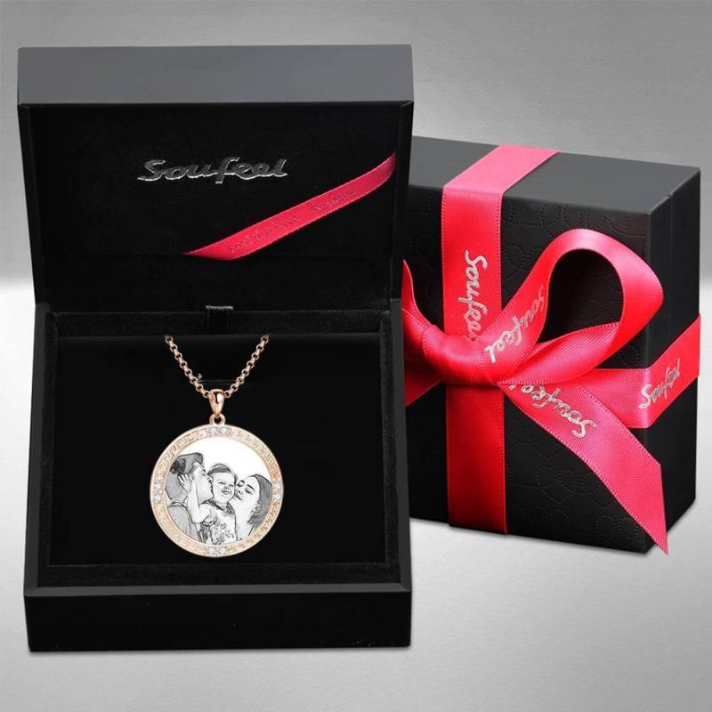 Men's Personalized Photo Engraved Necklace, Rhinestone Crystal Round Shape Photo Necklace Rose Gold Plated - Sketch
