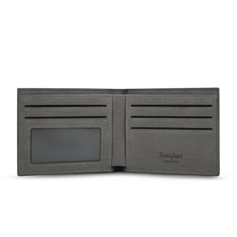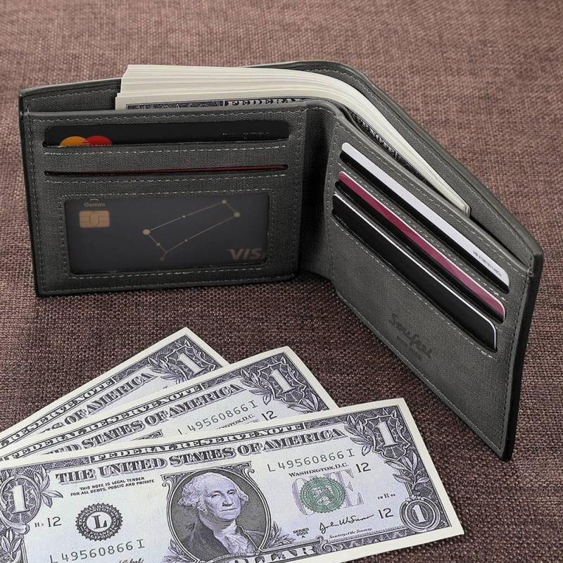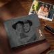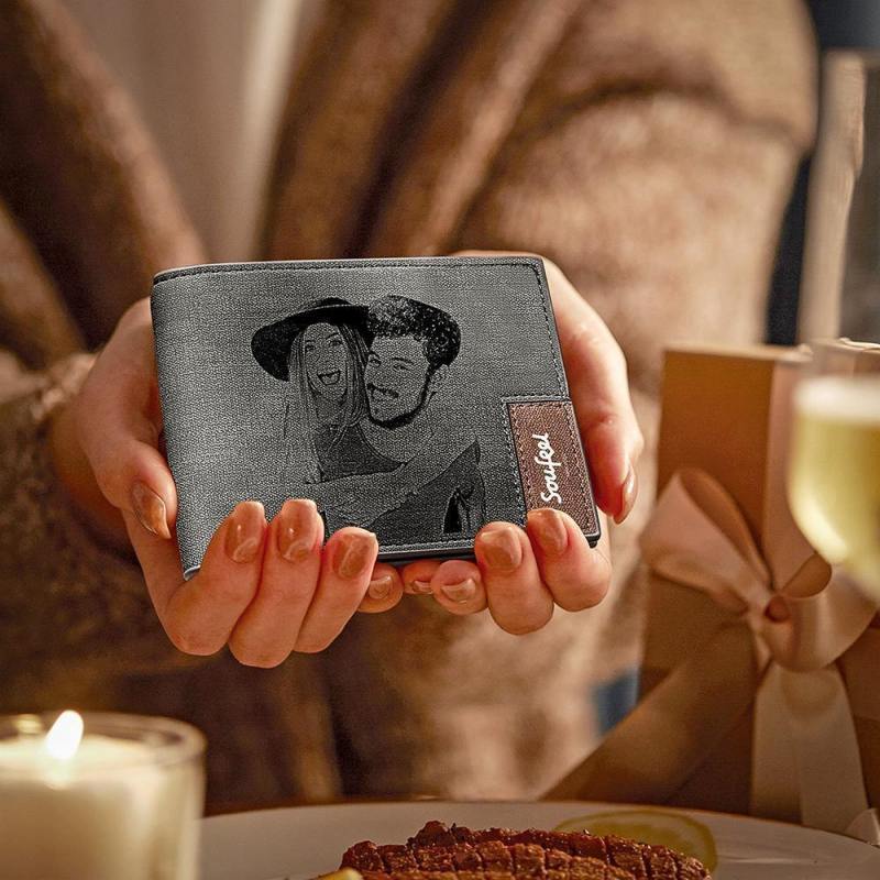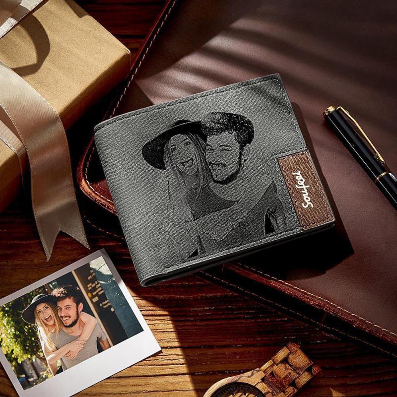 Men's Bifold Custom Inscription Photo Engraved Wallet - Grey Leather