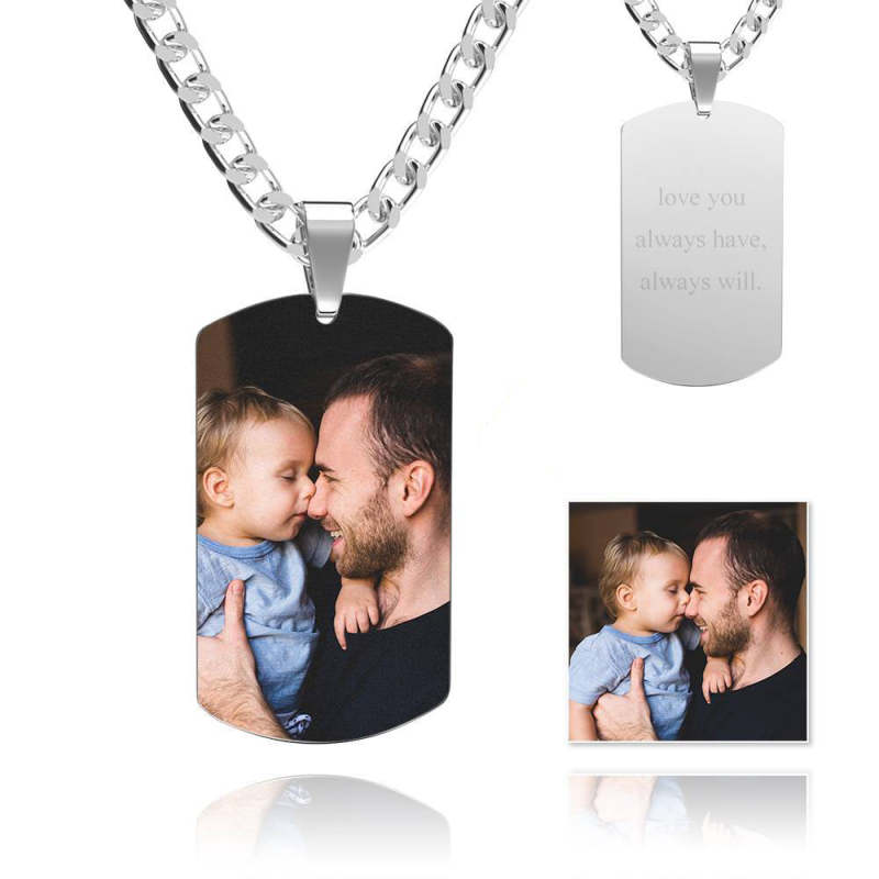 Men's Photo Tag Necklace With Engraving Stainless Steel