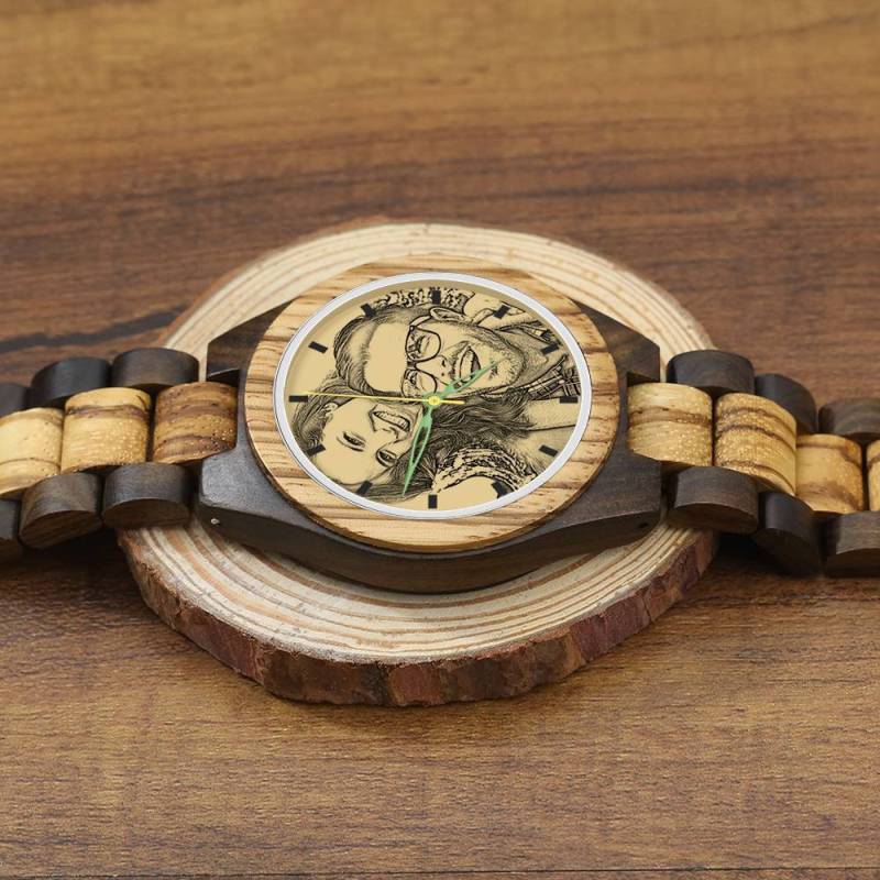 Men's Engraved Wooden Photo Watch Wooden Strap 45mm
