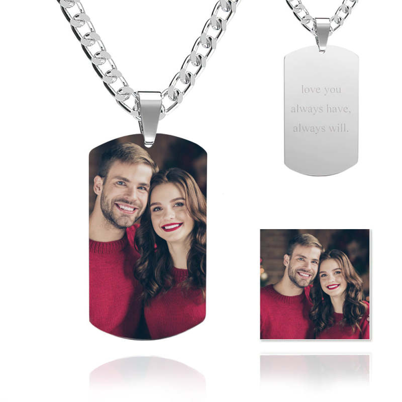 Men's Photo Tag Necklace With Engraving Stainless Steel Valentine's Day Gift