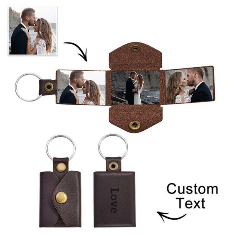 Mini Envelope Photo Keychain Personalized Vintage Engraved Leather Keychain Wedding Gift For Husband