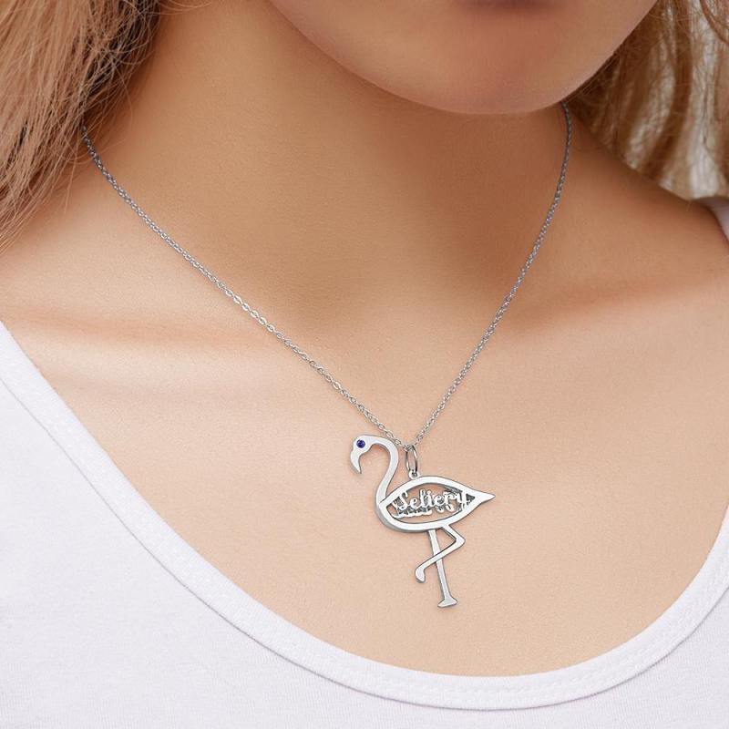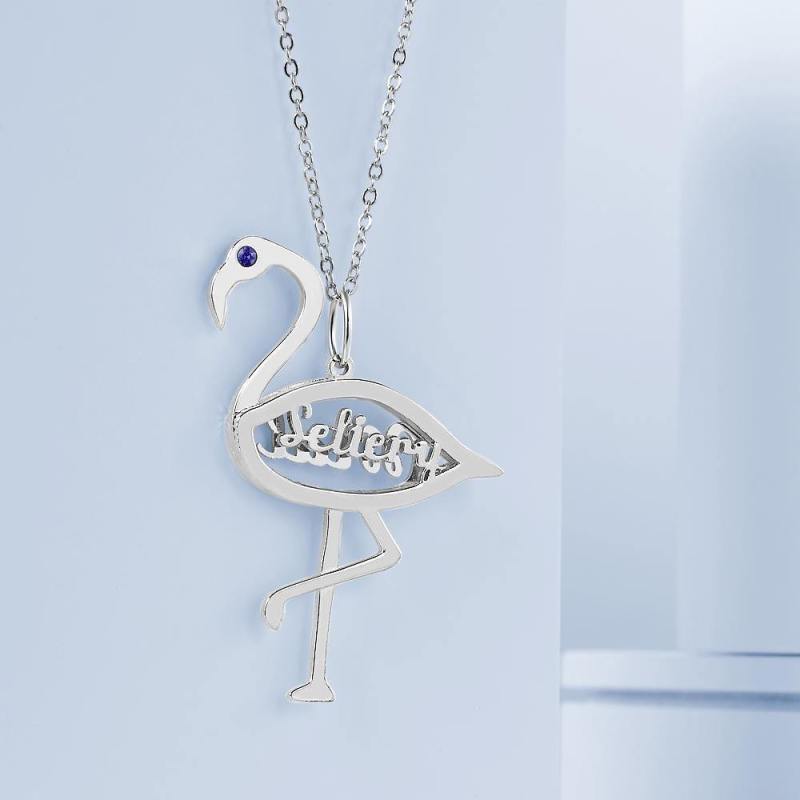 Name Necklace with Birthstone Necklace Flamingo Pendant Unique Gifts Silver