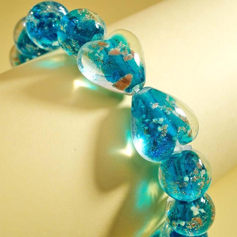 Navy Blue Heart-to-Heart Firefly Glass Stretch Beaded Bracelet Glow in the Dark Luminous Bracelet