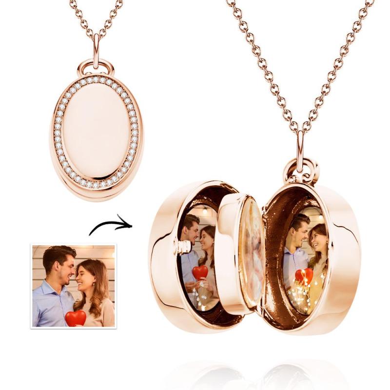 Oval Locket Photo Necklace Personalized Retro Memorial Picture Pendant Gift For Her
