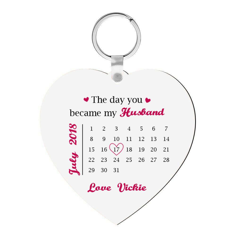 Personalised Calendar Keychain Heart Shaped Photo Engraved Keychain Gift For Lover