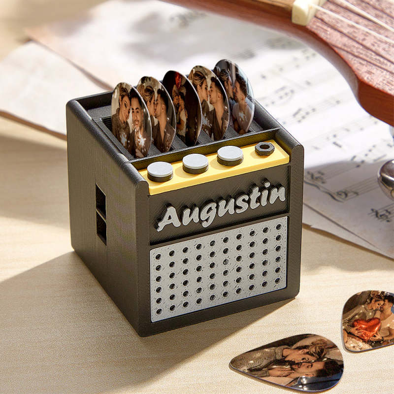Personalized 3D Printing Retro Guitar Amp Shape Guitar Picks Holder Plectrum Storage Box with Name Birthday Gift for Musician Guitar Player