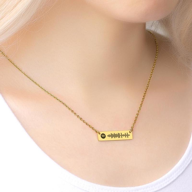 Personalized Bar Necklace Spotify Code Necklace Custom Music Spotify Scan Code Stainless Steel Necklace Gift 14K Gold