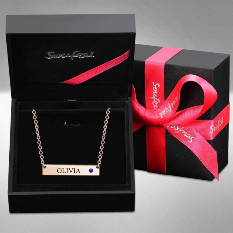 Personalized Birthstone Bar Necklace with Engraving Rose Gold Plated Silver
