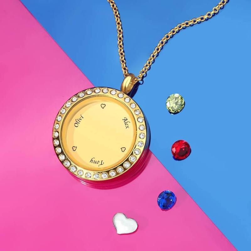 Personalized Birthstone Floating Locket Necklace with Engraving 14K Gold Plated