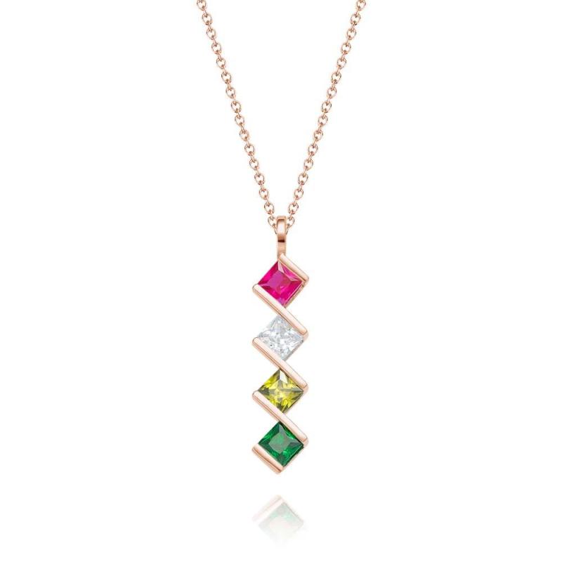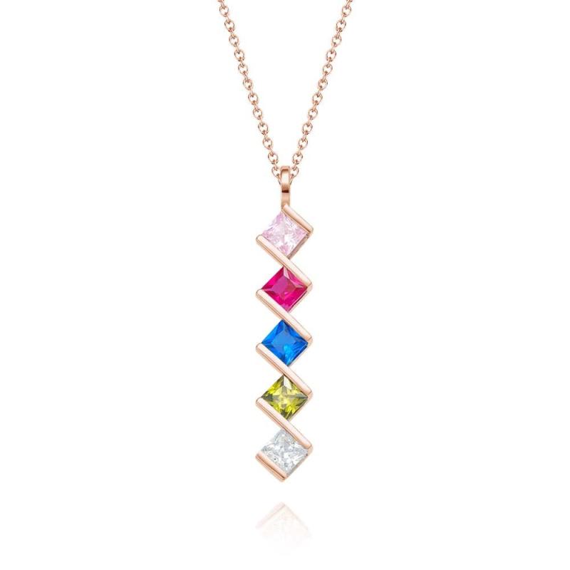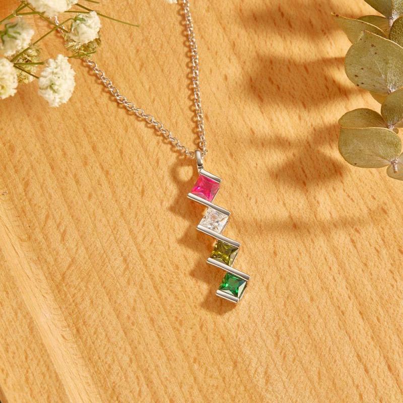 Personalized Birthstone Strip Necklace Colorful Square Diamond Pendant Gifts For Her