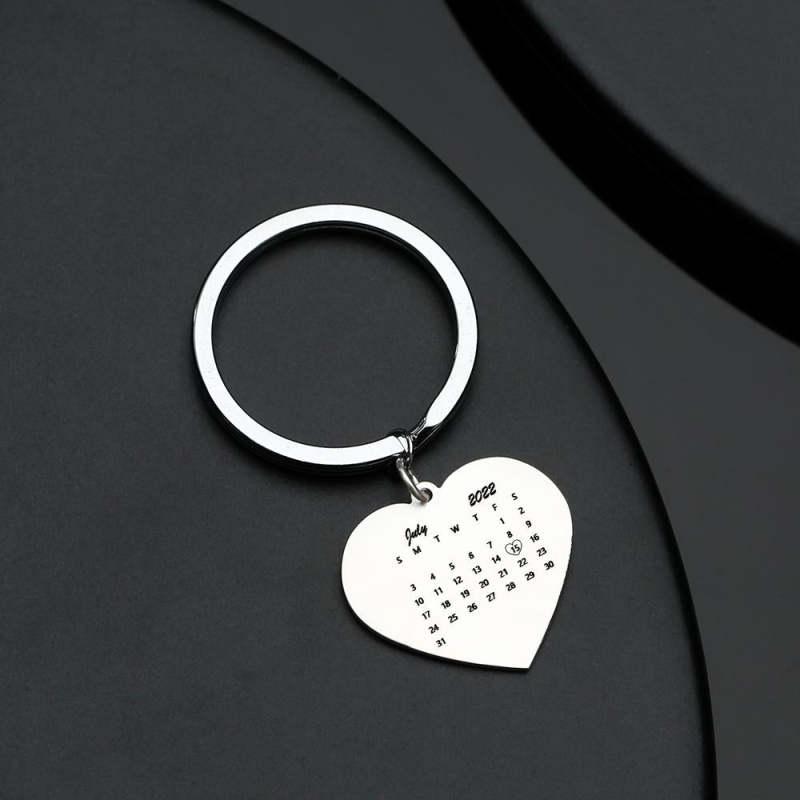 Personalized Calendar and Photo Keychain, Heart Keychain, Anniversary Gift for Couple