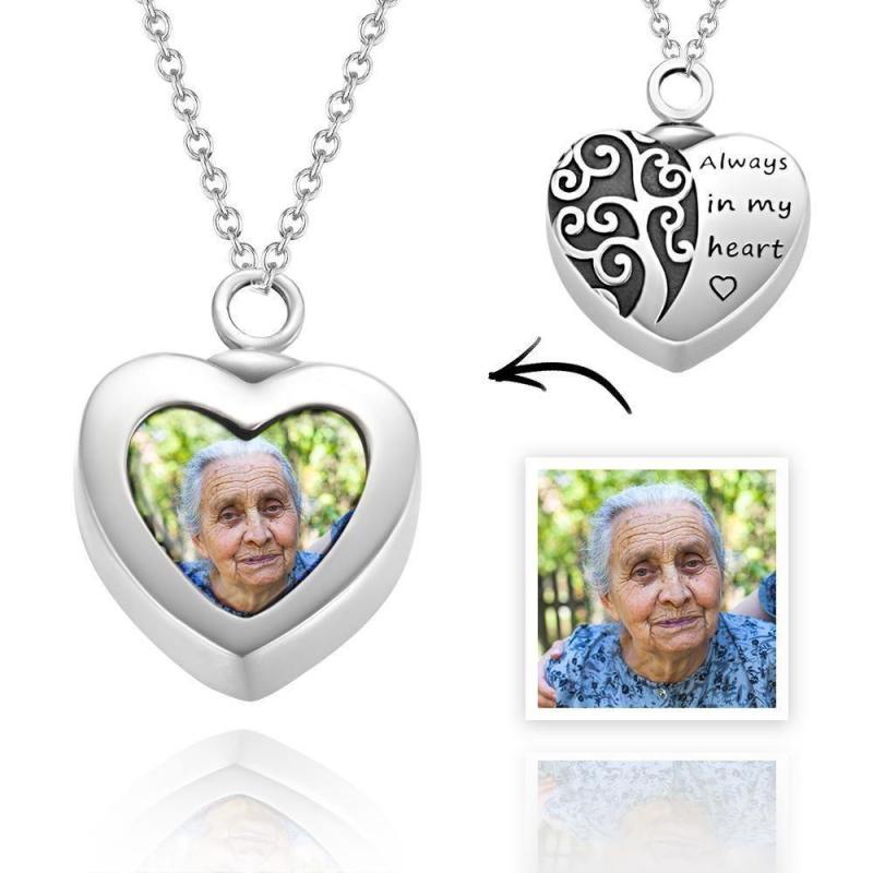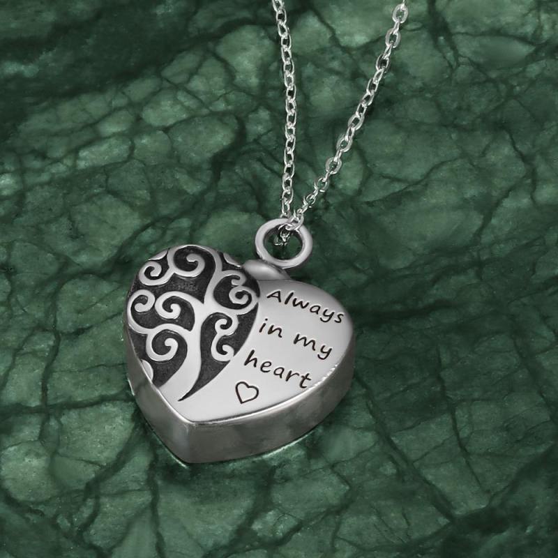 Engraved Urn Necklace Heart Necklace for Ashes Custom Pendant Necklace - Silver